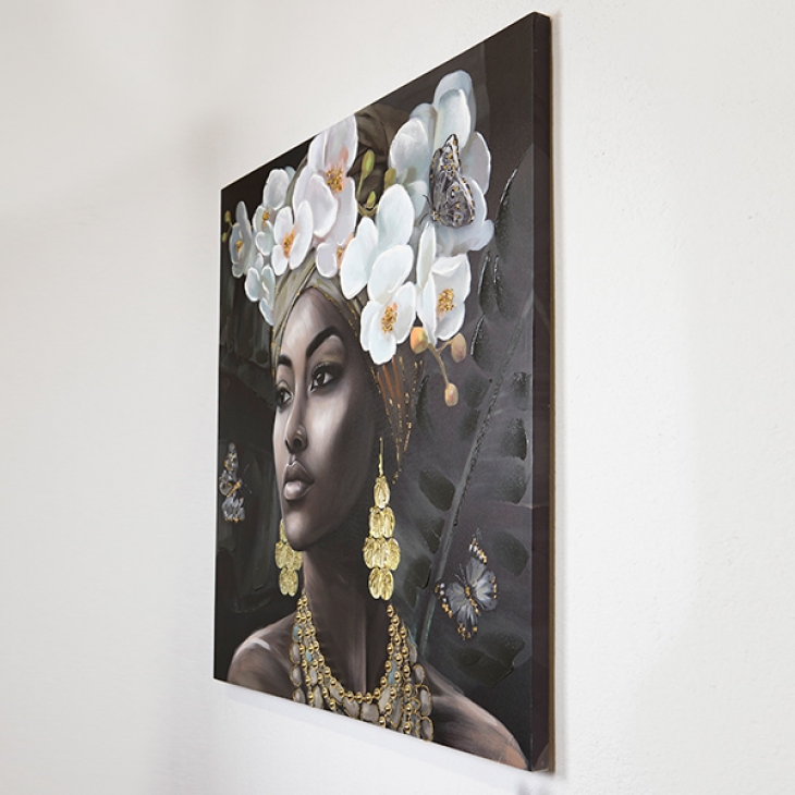 Πίνακας Καμβάς Γυναίκα Με Λουλόυδια Μαύρο-Λευκό-Γκρι 100x3x100εκ. ESTHETI 755-12046