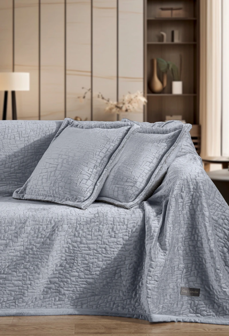 Ριχτάρι διακοσμητικό πολυθρόνας ultrasoft καπιτονέ 2 όψεων από την Guy Laroche Paris μαζί με διακοσμητική μαξιλαροθήκη από το ίδιο ύφασμα.