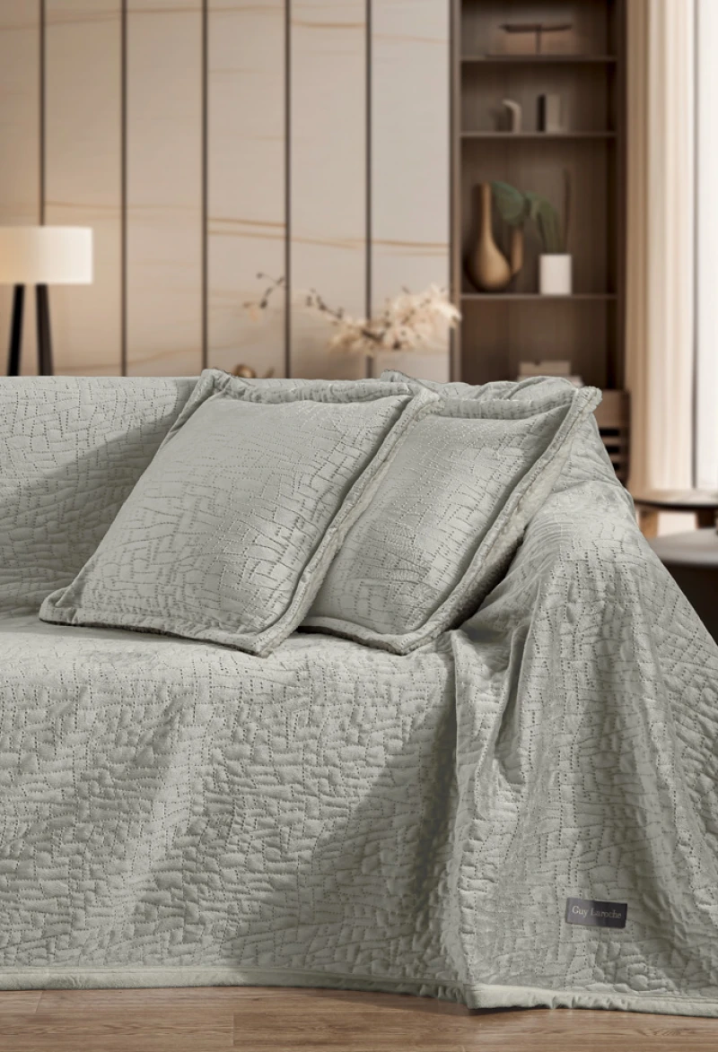 Ριχτάρι διακοσμητικό πολυθρόνας ultrasoft καπιτονέ 2 όψεων από την Guy Laroche Paris μαζί με διακοσμητική μαξιλαροθήκη από το ίδιο ύφασμα.