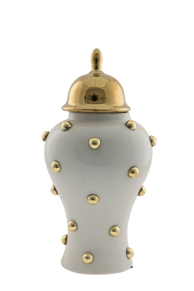 Βάζο κεραμικό με καπάκι σε λευκό χρώμα με χρυσές βούλες από την Zen Collection - Διαστάσεις: 18x38εκ.