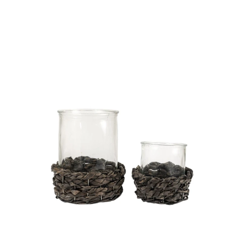 Σετ 2τμχ κηροπήγια γυάλινα με ψάθινη βάση από την Zen Collection - Διαστάσεις: 7x16εκ.-6x12εκ.