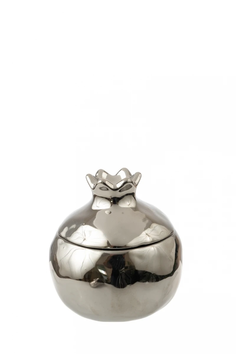 Διακοσμητικό Ρόδι Με Καπάκι Κεραμικό Ασημί 10εκ. Zen Collection 24.3.50543