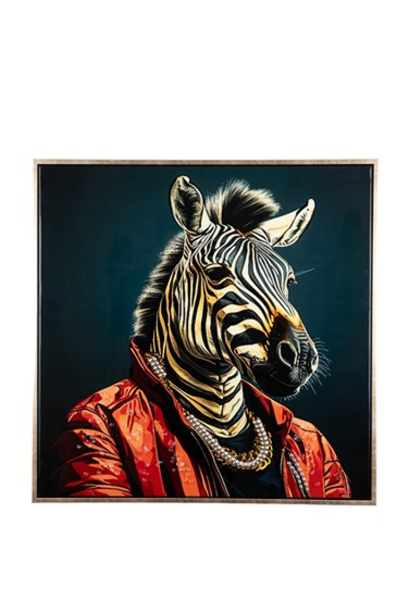 Πίνακας σε καμβά με σχέδιο ζέβρα και ακρυλικά χρώματα σε χρυσή κορνίζα από την Zen Collection - Διαστάσεις: 62,5x2,8x62,5εκ.