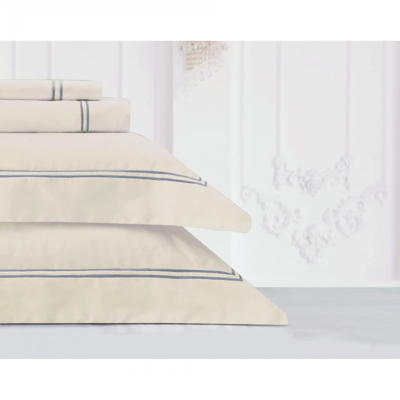 Σετ σεντόνια king (extra υπέρδιπλα) 100% βαμβακοσατέν, 230 κλωστών, σε μπεζ - εκρού χρώμα της σειράς Private Collection από την εταιρεία Makis Tselios Home. Το σετ περιλαμβάνει: 2 σεντόνια 260x270εκ. και 2 μαξιλαροθήκες 50x70εκ.