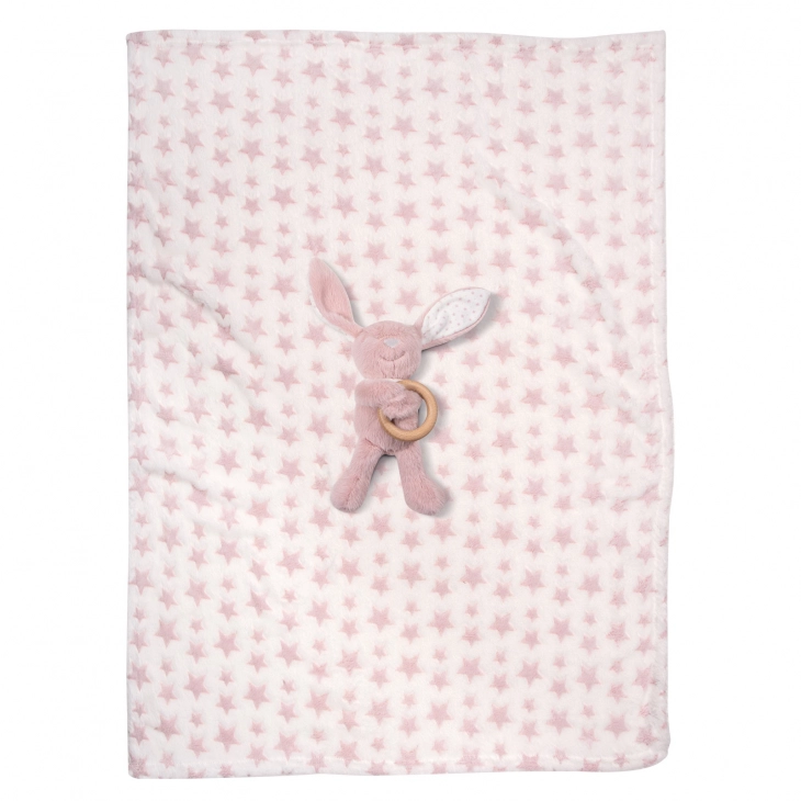 Κουβέρτα Fleece Με Παιχνίδι Αγκαλιάς-Λίκνου 75x100εκ. Essential Baby 8845 Ροζ-Λευκή Greenwich Polo Club