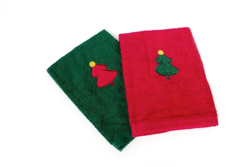 Σετ πετσέτες Χριστουγεννιάτικες 2 τεμ. με ανεξίτηλα χρώματα και κεντημένο σχέδιο που απεικονίζει γιορτινό Χριστουγεννιάτικο δέντρο, ιδανικό για δώρο που περιέχει που περιέχει: 2 πετσέτες χειρός, διαστάσεων 40X60, μία σε κόκκινο και μία σε πράσινο χρώμα. Οι πετσέτες είναι κατασκευασμένες από 100% βαμβάκι έξτρα απαλό και απορροφητικό και είναι ελεγμένες για επιβλαβείς ουσίες με το αναγνωρισμένο παγκοσμίως πιστοποιητικό, OEKO TEX® Standard 100. Συσκευασία δώρου με γιορτινή κορδέλα.