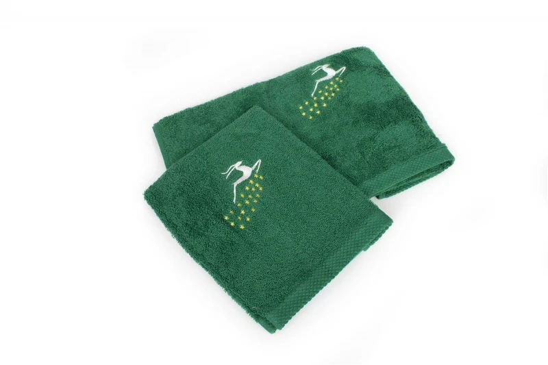 Σετ πετσέτες Χριστουγεννιάτικες 2 τεμ. σε χρώμα πράσινο, με ανεξίτηλα χρώματα και κεντημένο σχέδιο που απεικονίζει γιορτινό τάρανδο που πετάει στα αστέρια, ιδανικό για δώρο που περιέχει: 1 τεμ. πετσέτα χειρός, διαστάσεων 30X50 και 1 τεμ. πετσέτα προσώπου, διαστάσεων 50X90. Οι πετσέτες είναι κατασκευασμένες από 100% βαμβάκι έξτρα απαλό και απορροφητικό και είναι ελεγμένες για επιβλαβείς ουσίες με το αναγνωρισμένο παγκοσμίως πιστοποιητικό, OEKO TEX Standard 100. Συσκευασία δώρου με γιορτινή κορδέλα.