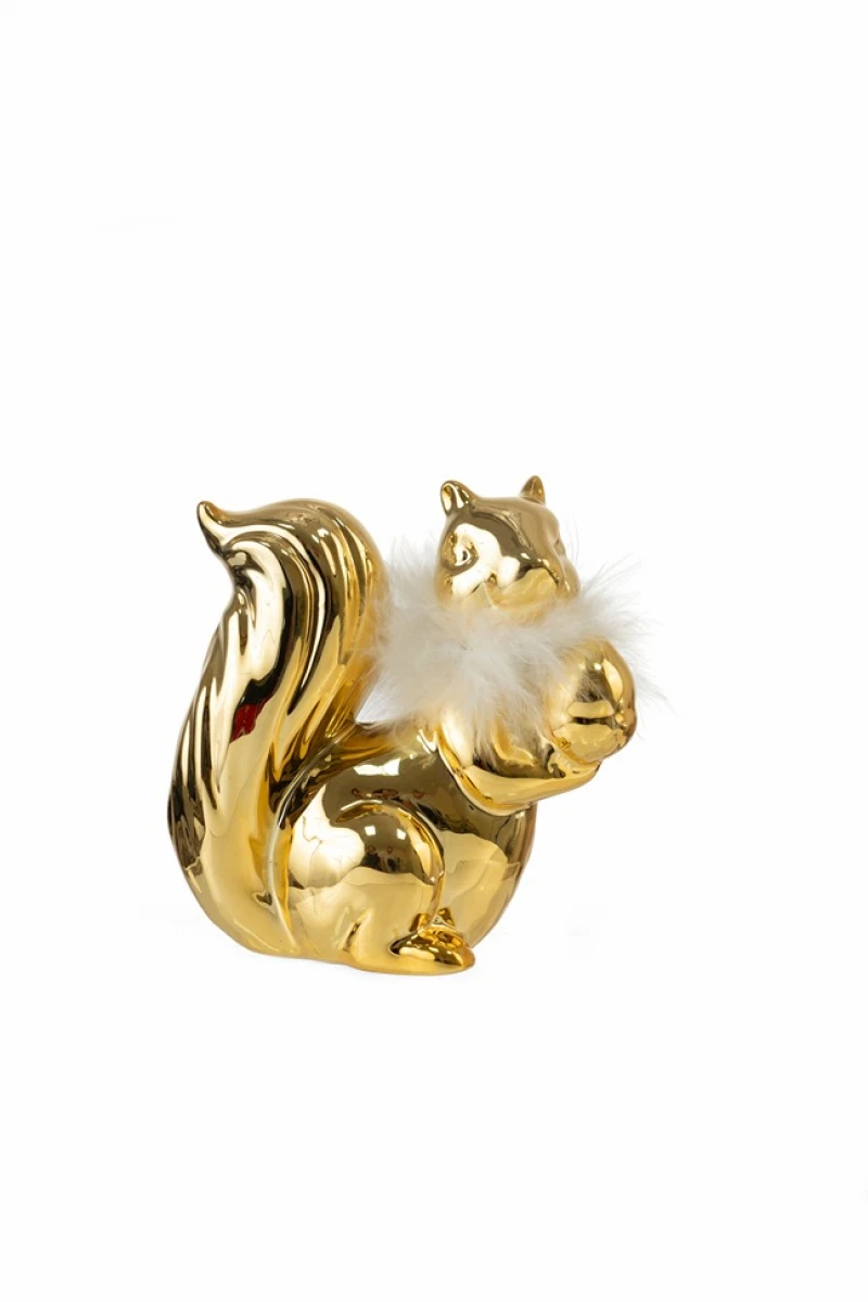 Διακοσμητικός επιτραπέζιος σκίουρος κεραμικός σε χρυσό χρώμα με λευκό πούπουλο από την Zen Collection - Διαστάσεις: 12x12x6εκ.