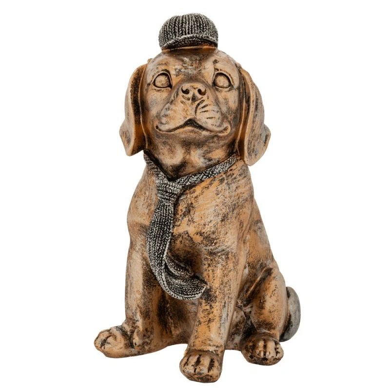 Διακοσμητικός επιτραπέζιος σκύλος καθιστός polyresin σε χρυσό χρώμα από την iliadis - Διαστάσεις: 14x12x20εκ.