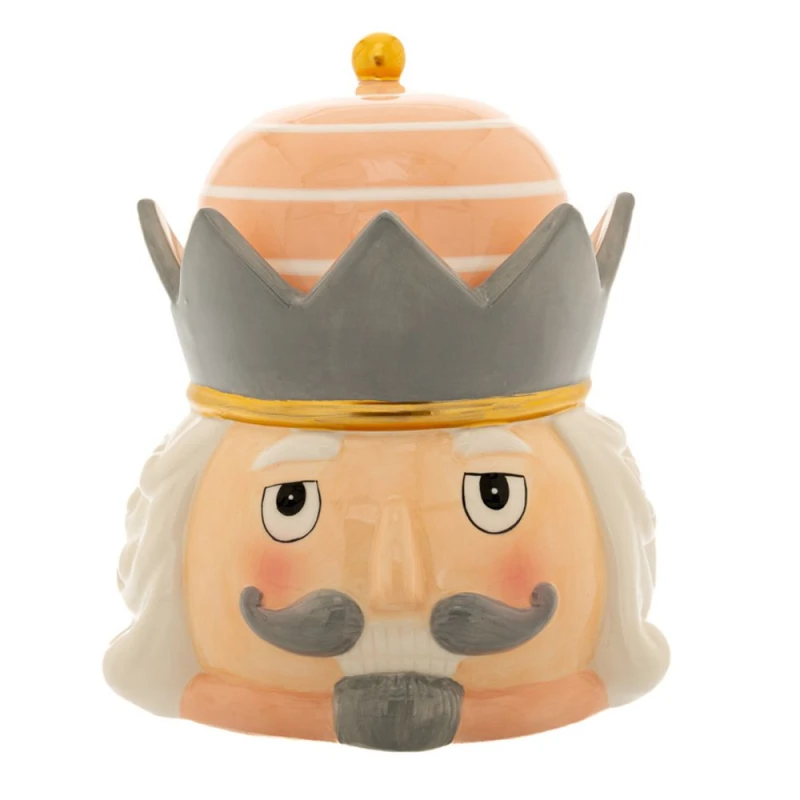 Χριστουγεννιάτικη μπισκοτιέρα κεραμική σε σχήμα καρυοθραύστη σε γκρι - ροζ χρώμα από την iliadis - Διαστάσεις: 19x17x22εκ.