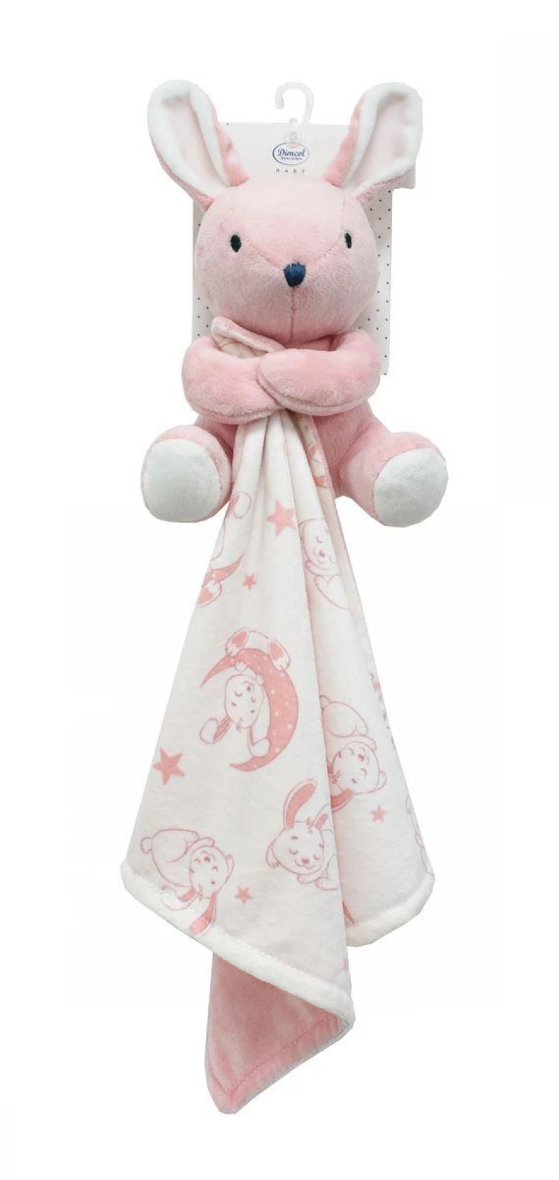 Πανάκι Παρηγορίας Fleece 30x30εκ. Με Λούτρινο Ζωάκι 20 εκ. Bunny 14 Pink Dimcol