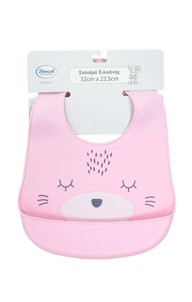 Σαλιάρα Σιλικόνης Με Κουμπί Και Τσέπη 22,5x32εκ. 16 Pink Dimcol