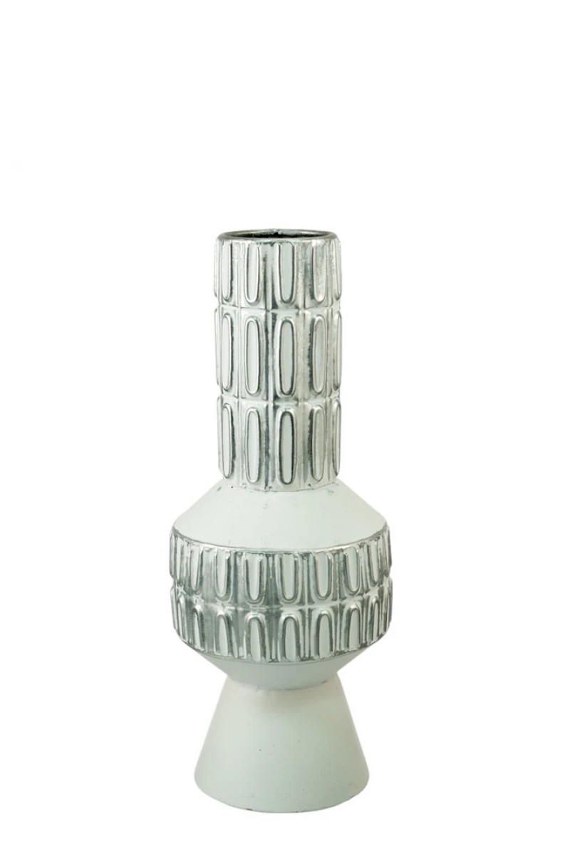 Βάζο μεταλλικό σε ασημί-λευκό χρώμα από την Zen Collection - Διαστάσεις: 16x16x39εκ.