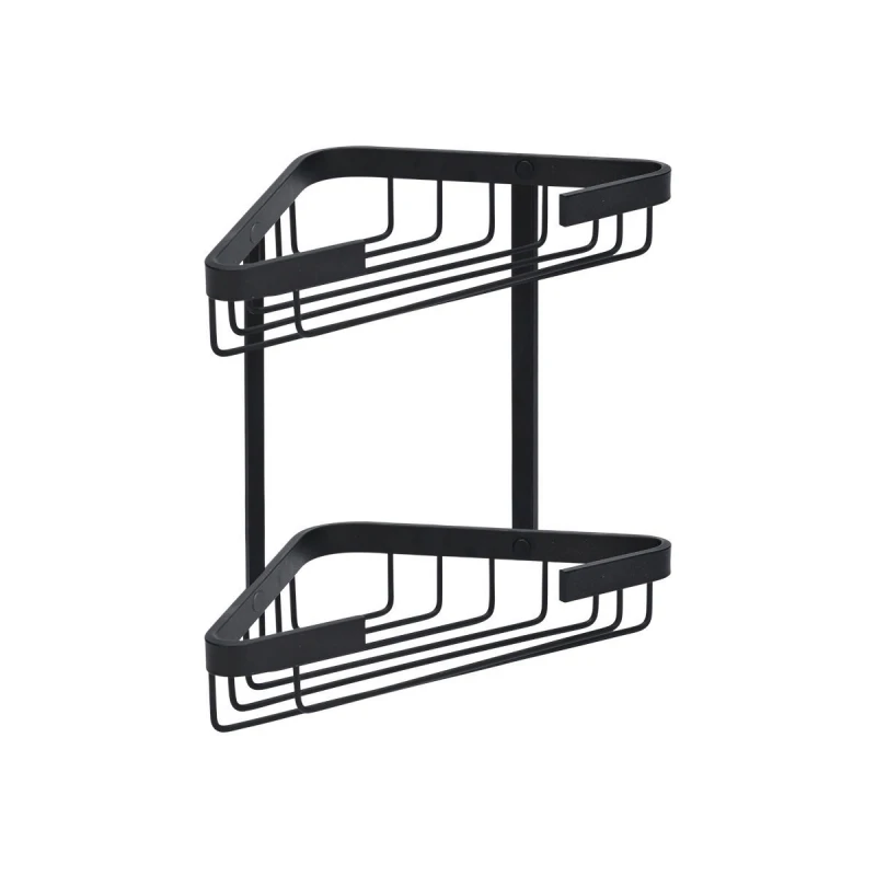 Εταζέρα γωνιακή 2 θέσεων αλουμινίου σε μαύρο χρώμα, με αυτοκόλλητο διπλής όψης της σειράς Stance από την Estia - Διαστάσεις: 25x17x28,5εκ.
