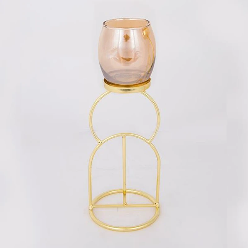 Κηροπήγιο μεταλλικό σε χρυσό χρώμα με γυάλινο μελί δοχείο από την ESTHETI - Διαστάσεις: 10,5x28εκ.