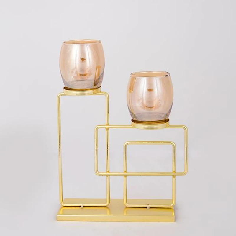 Κηροπήγιο 2 θέσεων μεταλλικό σε χρυσό χρώμα με γυάλινα μελί δοχεία από την ESTHETI - Διαστάσεις: 22.5x7,5x31,5εκ.
