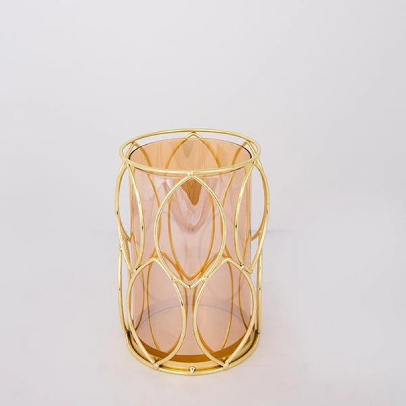 Κηροπήγιο μεταλλικό σε χρυσό χρώμα με γυάλινο μελί δοχείο από την ESTHETI - Διαστάσεις: 13,5x20εκ.