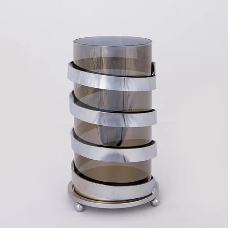 Κηροπήγιο μεταλλικό σε ασημί χρώμα με γυάλινο γκρι δοχείο από την ESTHETI - Διαστάσεις: 11x21,5εκ.