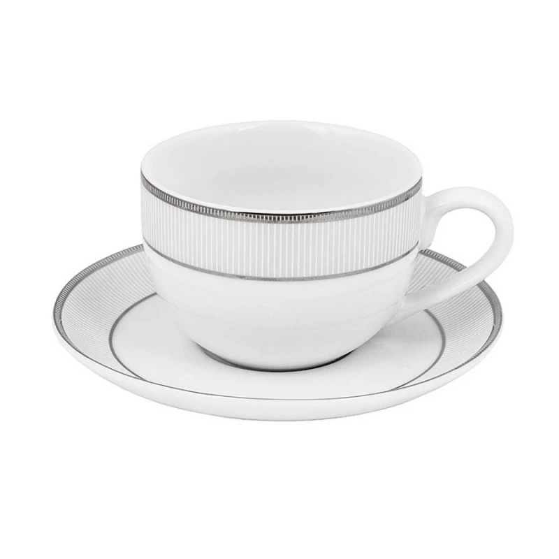 Σετ 6τμχ φλυτζάνια τσαγιού πορσελάνης σε λευκό χρώμα με πλατίνα, της σειράς Classic Stripes από την Oriana Ferelli - Χωρητικότητας: 220ml.