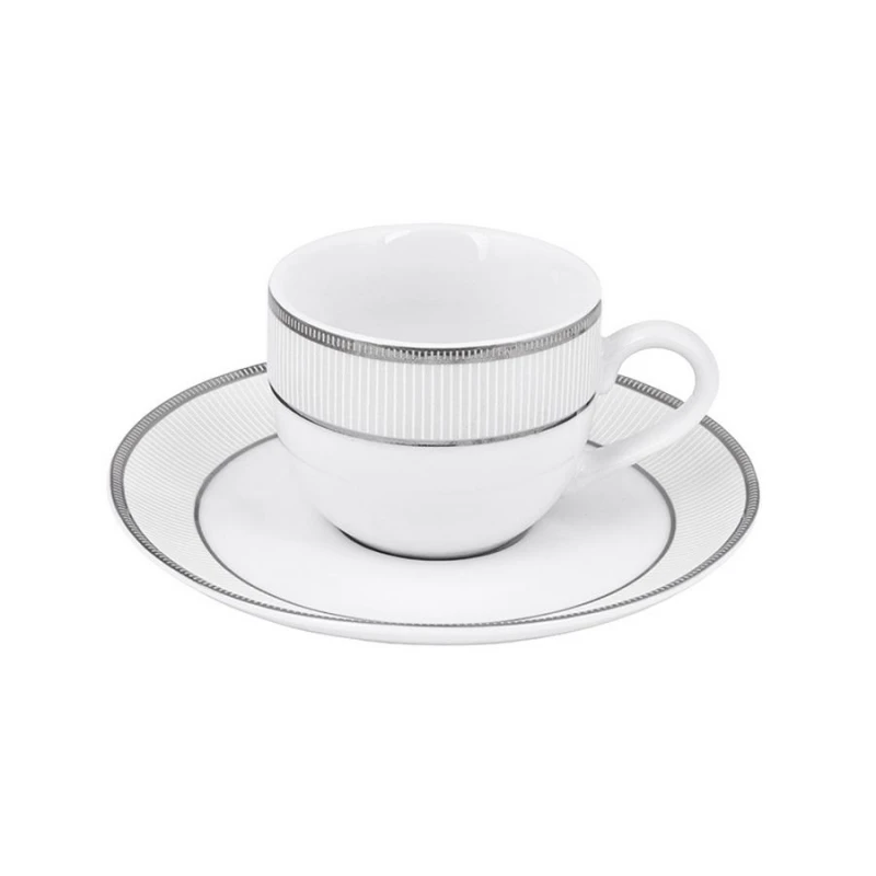 Σετ 6τμχ φλυτζάνια καφέ πορσελάνης σε λευκό χρώμα με πλατίνα, της σειράς Classic Stripes από την Oriana Ferelli - Χωρητικότητας: 90ml.