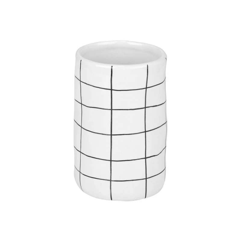 Ποτηροθήκη κεραμική σε λευκό - μαύρο χρώμα της σειράς Cage από την Estia - Διαστάσεις: 7,5x12εκ.