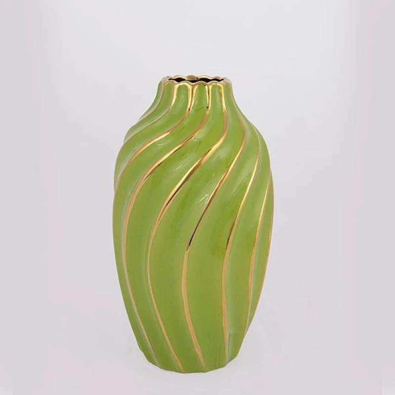 Βάζο κεραμικό σε πράσινο - χρυσό χρώμα από την ESTHETI - Διαστάσεις: 14x14x24,5εκ.