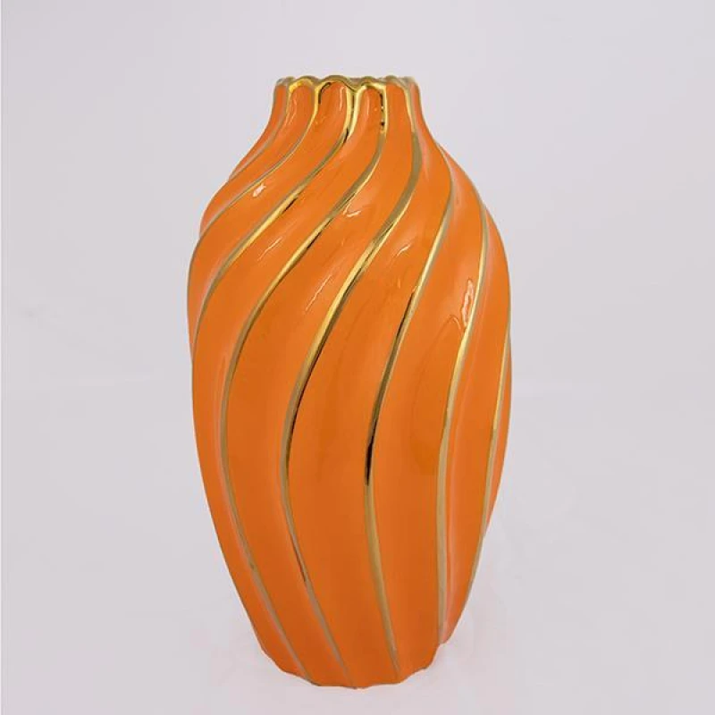 Βάζο κεραμικό σε πορτοκαλί - χρυσό χρώμα από την ESTHETI - Διαστάσεις: 17x17x30,5εκ.
