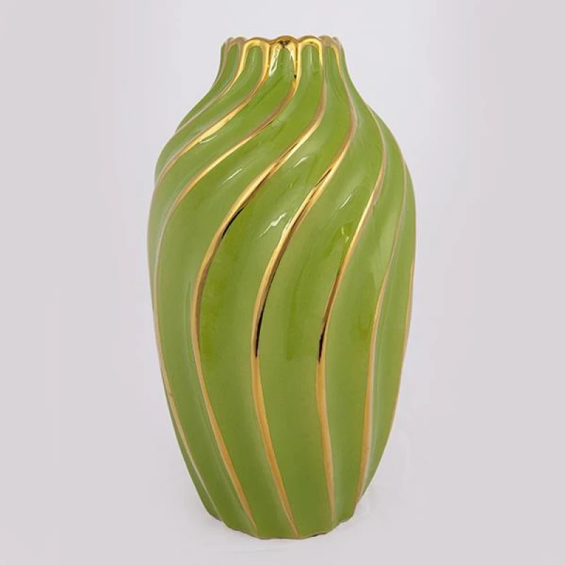 Βάζο Κεραμικό Πράσινο-Χρυσό 17x17x30,5εκ. ESTHETI 752-20185