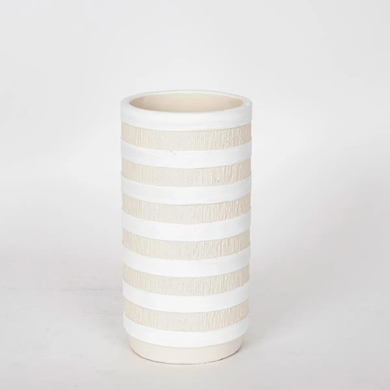 Βάζο κεραμικό σε μπεζ - λευκό χρώμα από την ESTHETI - Διαστάσεις: 12,5x12,5x24εκ.