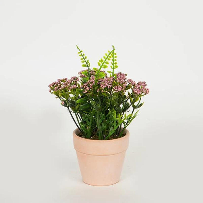 Γλαστράκι σε σομόν χρώμα με πράσινο φυτό με ανθάκια από την ESTHETI - Διαστάσεις: 16εκ. - Η ελάχιστη ποσότητα αγοράς για αυτό το προϊόν είναι 12τμχ.