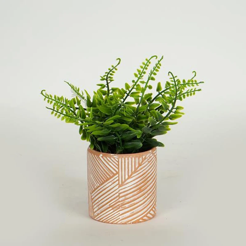 Γλαστράκι σε τερρακότα χρώμα με πράσινο φυτό από την ESTHETI - Διαστάσεις: 18εκ. - Η ελάχιστη ποσότητα αγοράς για αυτό το προϊόν είναι 6τμχ.