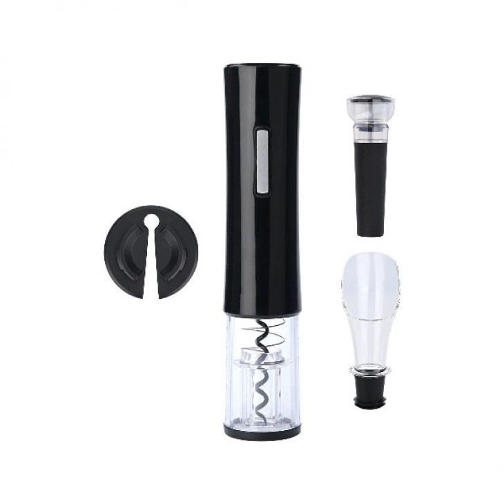 Ανοιχτήρι κρασιού μπαταρίας με 3 αξεσουάρ σε μαύρο - διάφανο χρώμα από την Estia - Διαστάσεις: 5x5x23εκ.