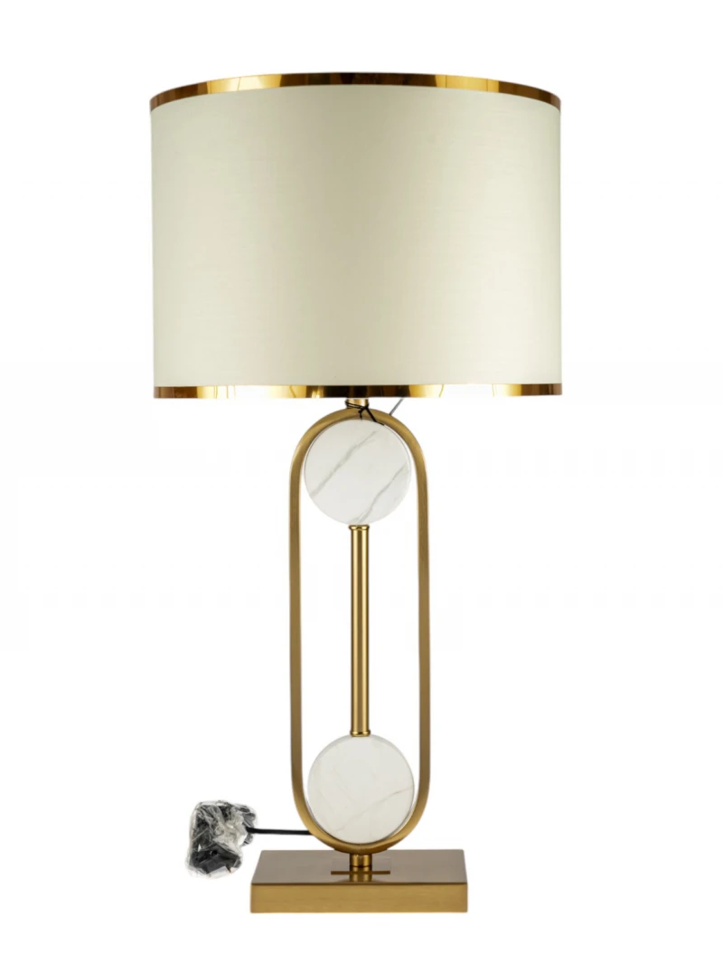 Επιτραπέζιο φωτιστικό χρυσό με λευκό καπέλο, χρυσές ρίγες και γυάλινες μπάλες από την Zen Collection - Διαστάσεις: 35x69εκ.