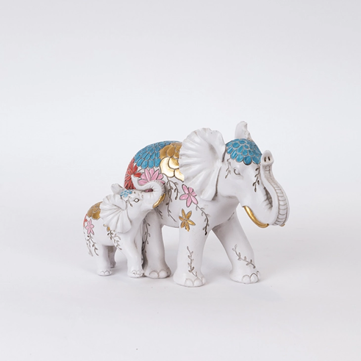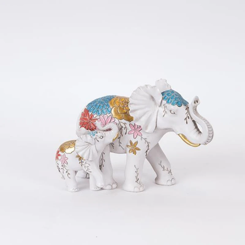 Διακοσμητικός επιτραπέζιος ελέφαντας με ελεφαντάκι, polyresin σε λευκό χρώμα με πολύχρωμα λουλούδια από την ESTHETI - Διαστάσεις: 22,5x12x16εκ.