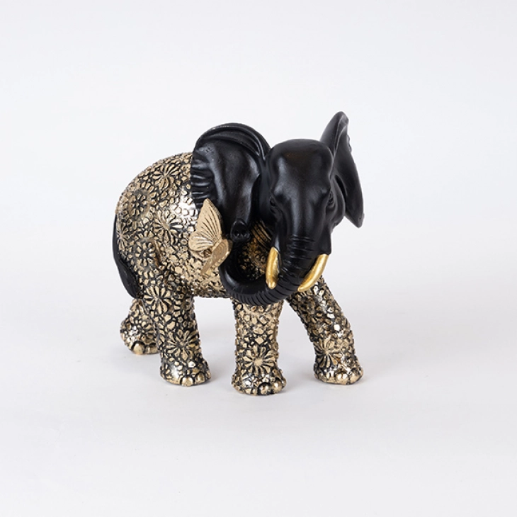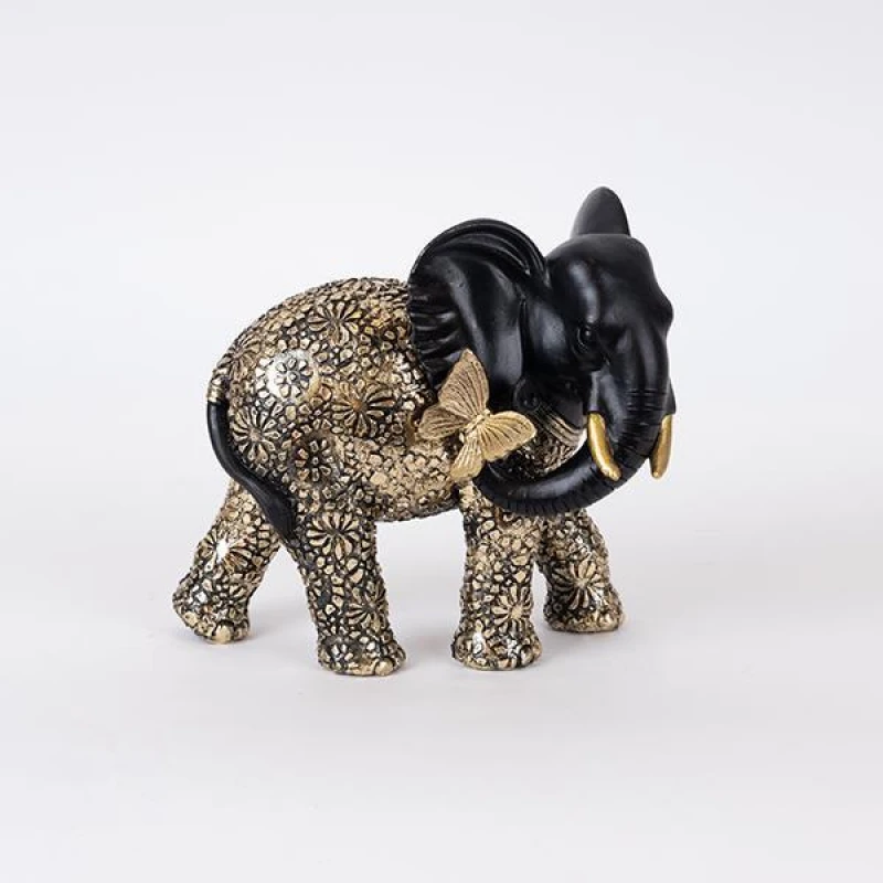 Διακοσμητικός Ελέφαντας Polyresin Με Πεταλούδα Μαύρος-Χρυσός 19x11x17εκ. ESTHETI 752-11624
