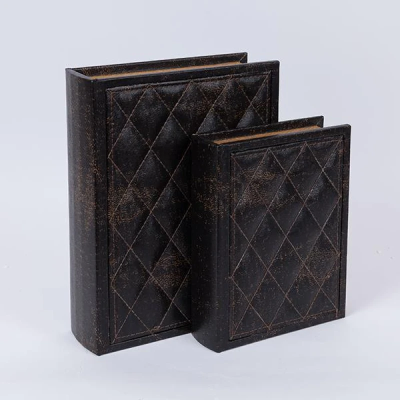 Διακοσμητικό Κουτί Βιβλίο Σετ 2τμχ Ξύλινο-Pu Μαύρο 30x22x7εκ.-23x17x5,5εκ. ESTHETI 752-17075
