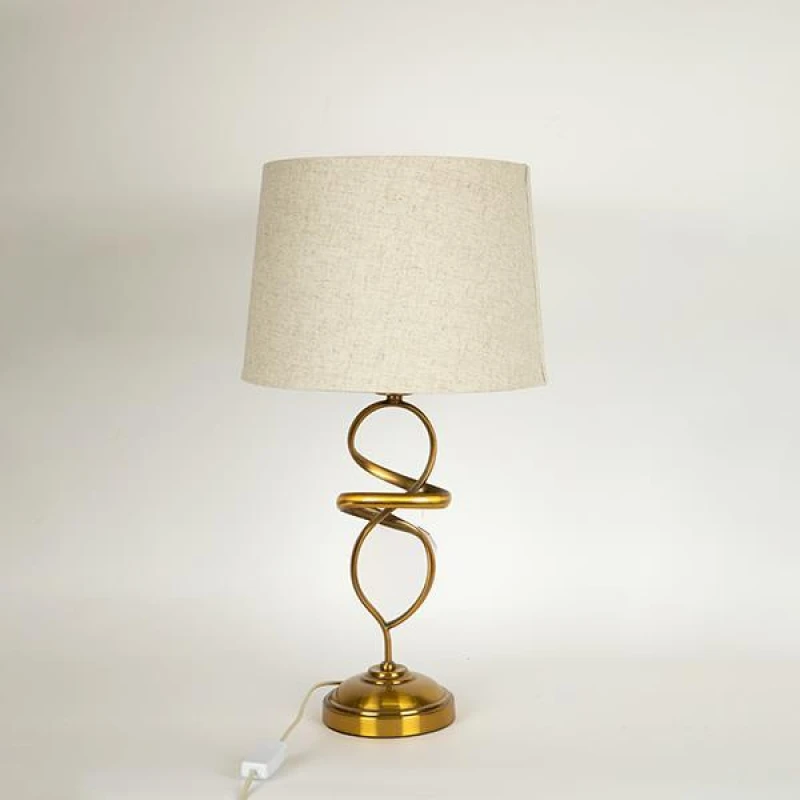 Φωτιστικό επιτραπέζιο με μεταλλική χρυσή βάση και λινό καπέλο σε λευκό χρώμα από την ESTHETI - Διαστάσεις: 33x60εκ.