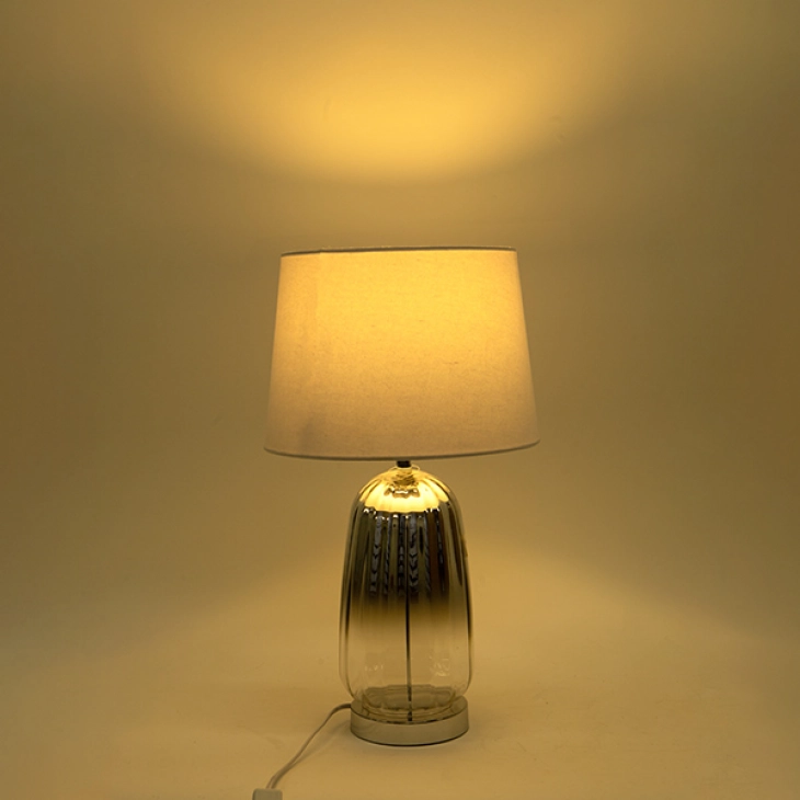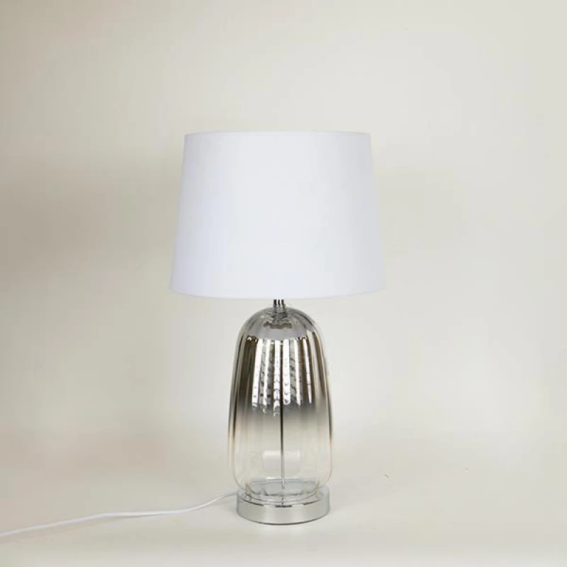 Φωτιστικό Επιτραπέζιο Μεταλλικό-Γυάλινο-Λινό Ασημί-Λευκό 30x52εκ. ESTHETI 757-10050