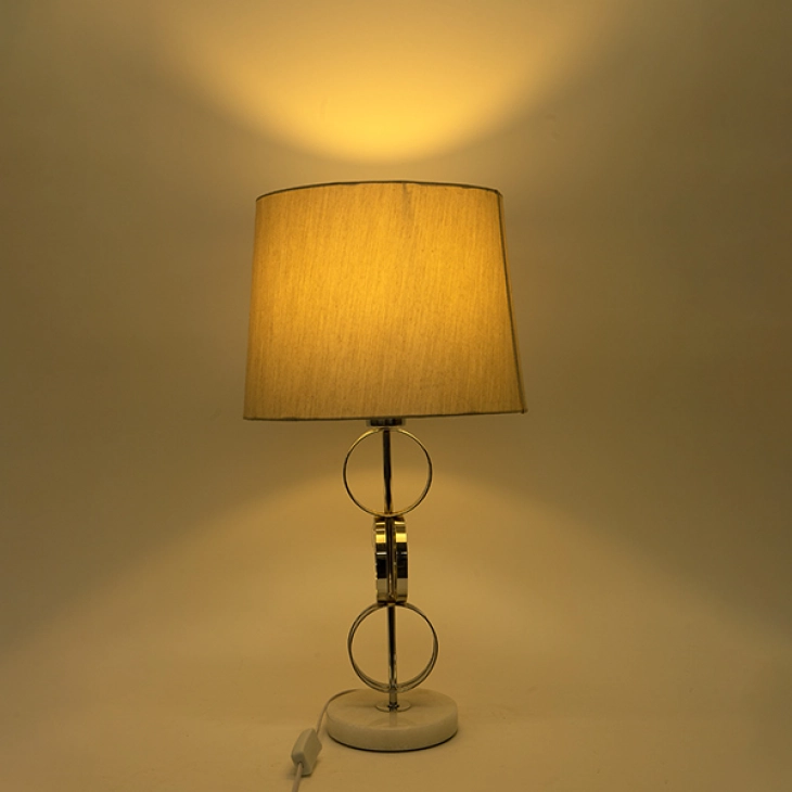 Φωτιστικό επιτραπέζιο με μεταλλική-μαρμάρινη, λευκή-ασημί βάση και λινό καπέλο σε γκρι χρώμα από την ESTHETI - Διαστάσεις: 33x60εκ.