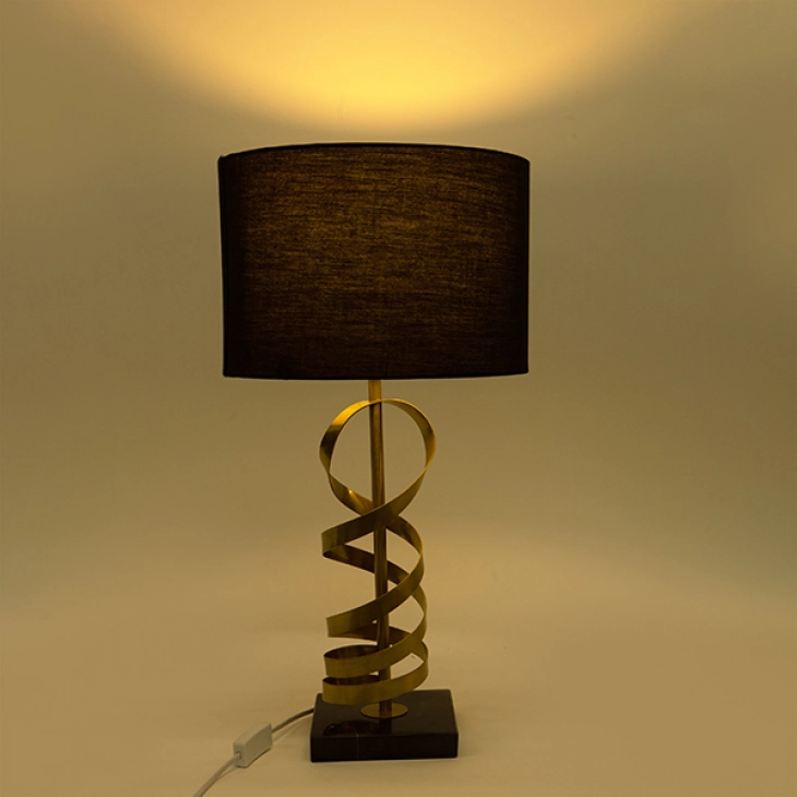 Φωτιστικό επιτραπέζιο με μεταλλική χρυσή βάση και λινό καπέλο σε μαύρο χρώμα από την ESTHETI - Διαστάσεις: 32x60εκ.