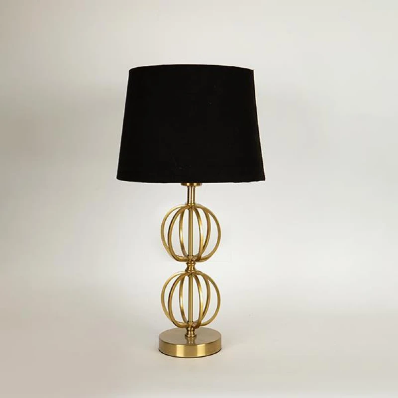 Φωτιστικό επιτραπέζιο με μεταλλική χρυσή βάση και suede καπέλο σε μαύρο χρώμα από την ESTHETI - Διαστάσεις: 30x57εκ.