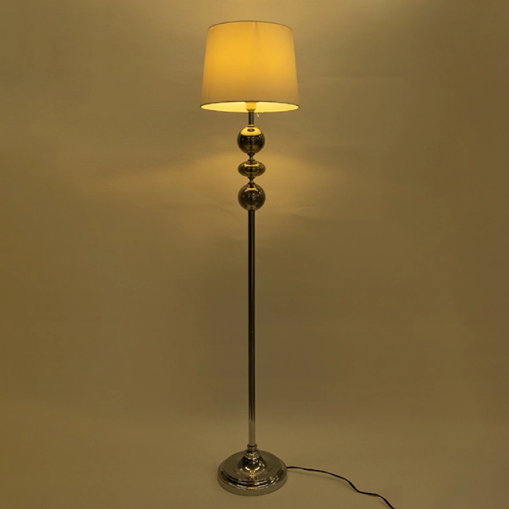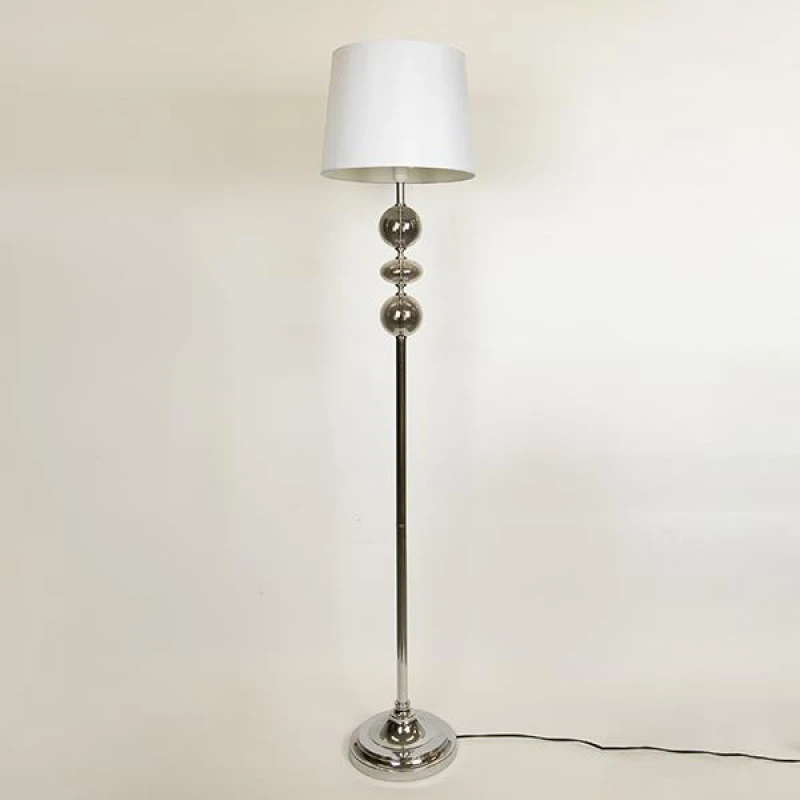 Φωτιστικό επιδαπέδιο μεταλλικό σε ασημί χρώμα με υφασμάτινο λευκό καπέλο από την ESTHETI - Διαστάσεις: 35x163εκ.