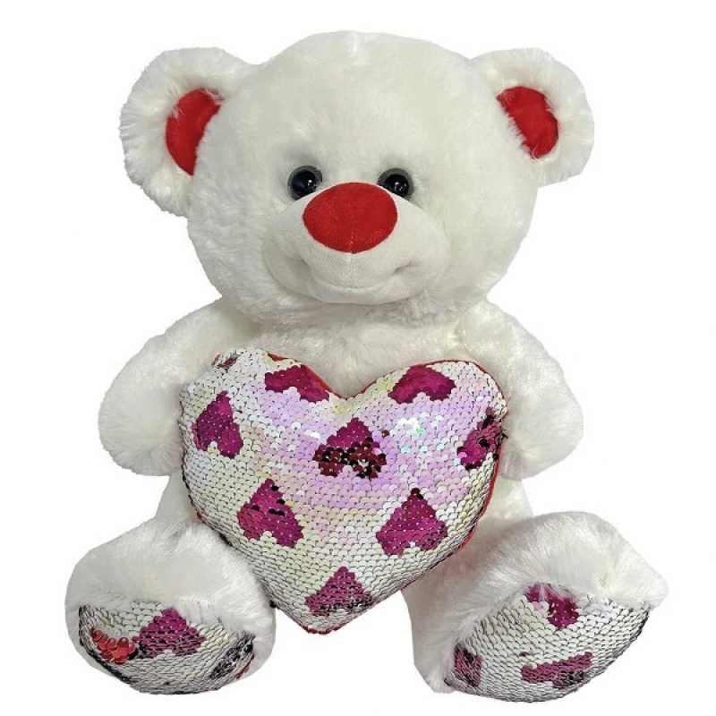 Αρκουδάκι λούτρινο σε λευκό χρώμα με καρδιά πούλιες από την Toy Markt - Διαστάσεις: 35εκ.