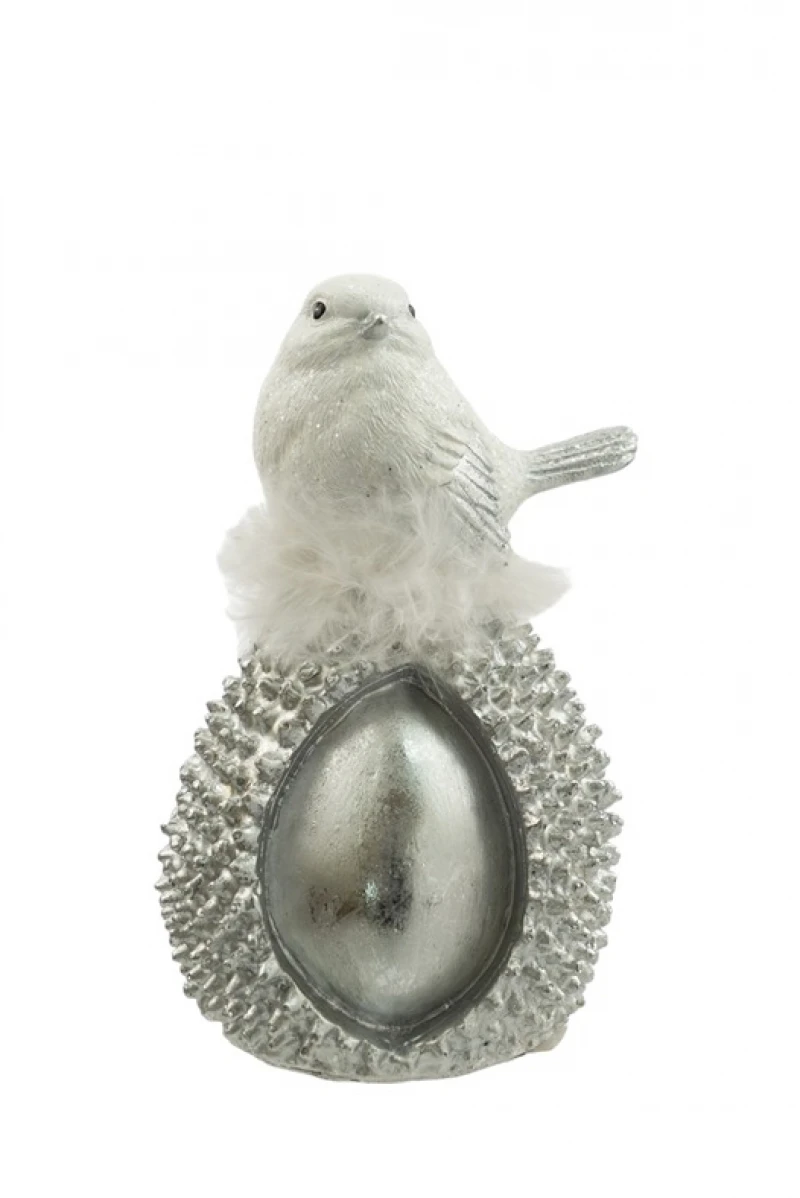 Διακοσμητικό Πουλί Σε Βελανίδι Polyester Ασημί-Λευκό 10x9x15,5εκ. Zen Collection 24.6.50451