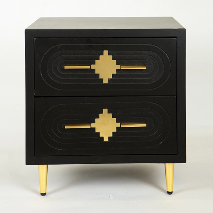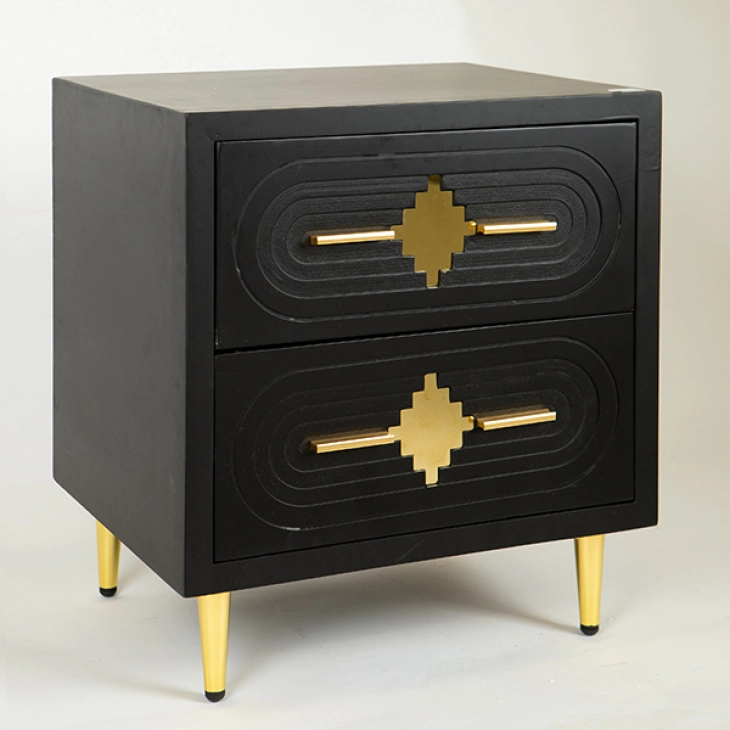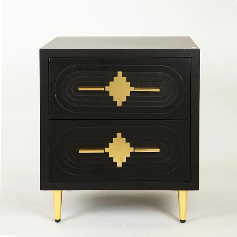 Κομοδίνο Ξύλινο-Μεταλλικό Μαύρο-Χρυσό 50x40x56εκ. ESTHETI 750-35513