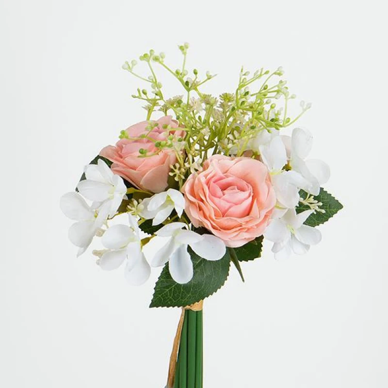 Μπουκέτο Με Τριαντάφυλλα Και Άνθη Μηλιάς 31εκ. Σομόν-Κρεμ ESTHETI 758-10036