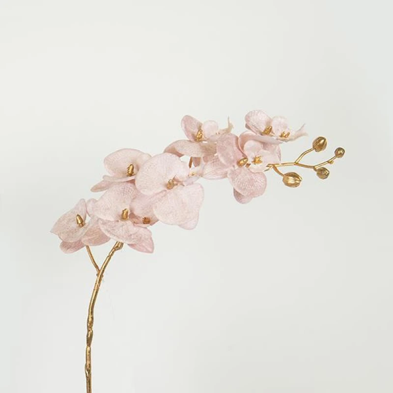 Κλαδί με ορχιδέα υφασμάτινο - πλαστικό σε χρυσό - λιλά χρώμα από την ESTHETI - Διαστάσεις: 75εκ. - Η ελάχιστη ποσότητα αγοράς για αυτό το προϊόν είναι 6τμχ.