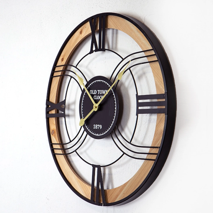 Ρολόι Τοίχου Μεταλλικό-Ξύλινο Μαύρο-Χρυσό-Natural 60x4,5x60εκ. ESTHETI 753-10023