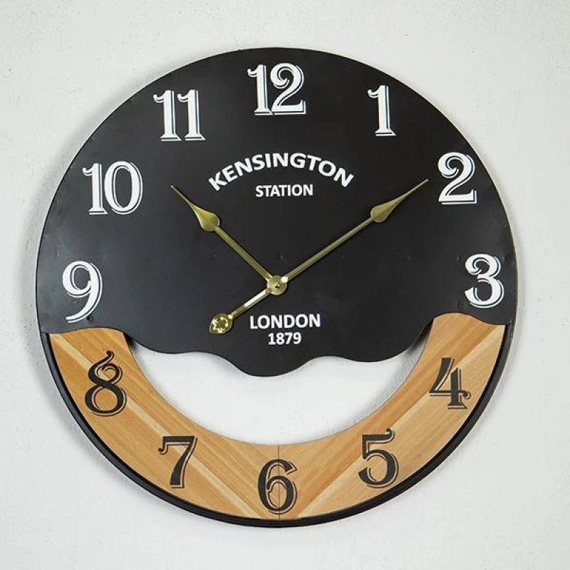 Ρολόι Τοίχου Ξύλινο-Μεταλλικό Natural-Λευκό-Μαύρο 60x4,5x60εκ. ESTHETI 753-10038