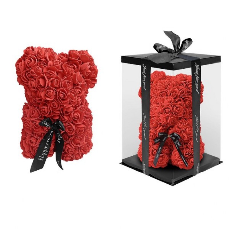 Αρκουδάκι κόκκινο από τεχνητά τριαντάφυλλα σε κουτί από την Homie - Διαστάσεις: 34εκ.
